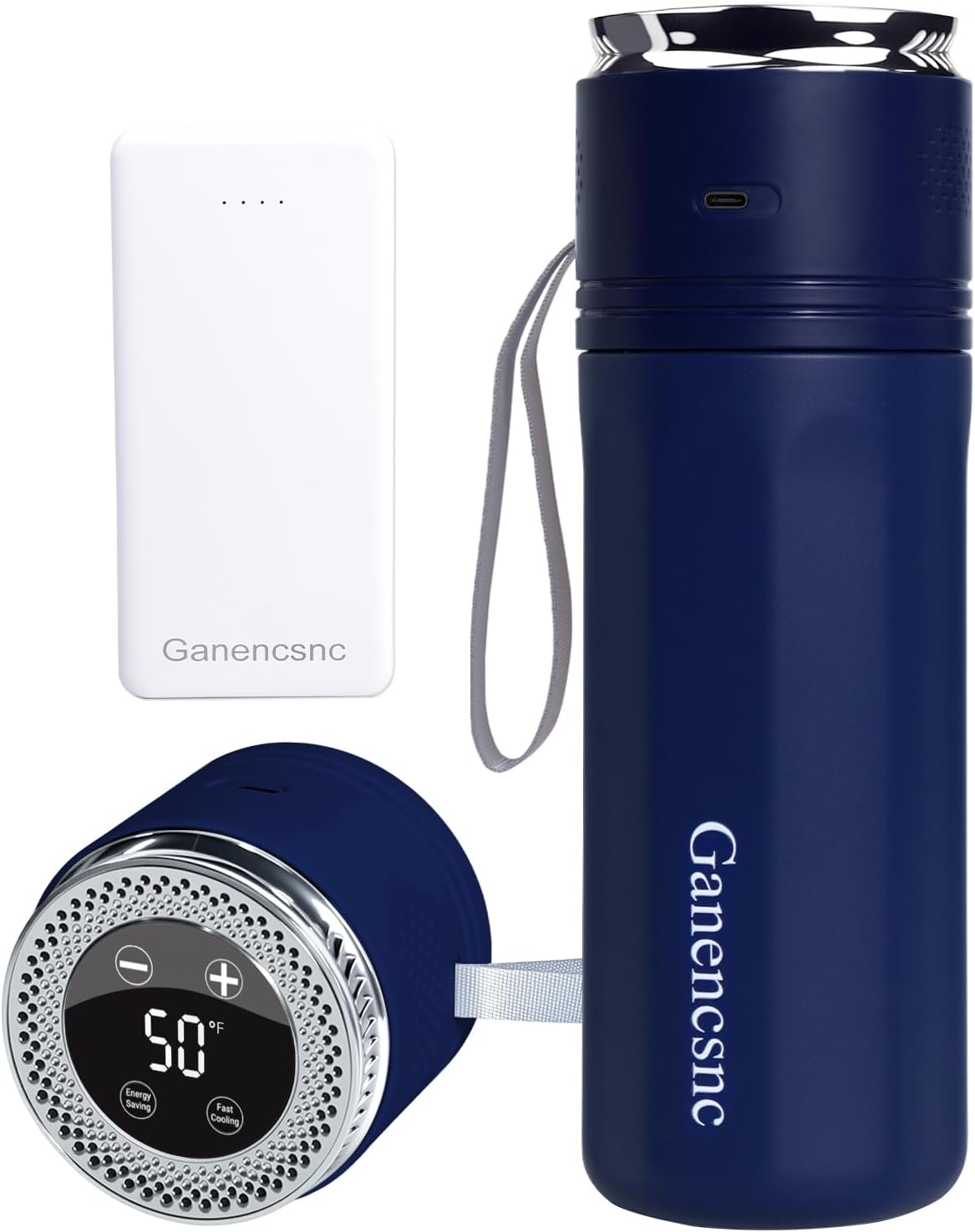 - User Guide.1. For Long Trips.Step ①: Putting the ice crystal stick frozen for 6-8 hours into the cup can effectively cool it for 8-10 hours.Step ②: When the Ice crystal stick effect diminishes, remove it from the cup. Connect the cup to a fully charged 10,000mAh power bank provides 4-6 hours of battery life, while a 20,000mAh power bank offers 8-10 hours. The actual battery life increases as the temperature drops, and vice versa.Step ③: After your power bank drains, fill the Emergency Ice Bucket with ice and It will provide an additional 6-8 hours of cooling.2. For Daily Use:connect the cup to any power source:Wall outlet adapter、Car charger、Computer USB port、Portable power bank。