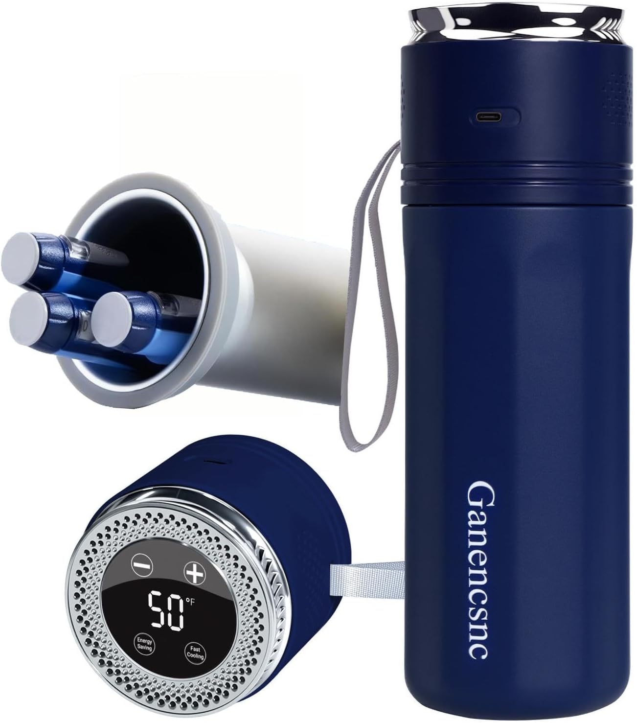 - User Guide.1. For Long Trips.Step ①: Putting the ice crystal stick frozen for 6-8 hours into the cup can effectively cool it for 8-10 hours.Step ②: When the Ice crystal stick effect diminishes, remove it from the cup. Connect the cup to a fully charged 10,000mAh power bank provides 4-6 hours of battery life, while a 20,000mAh power bank offers 8-10 hours. The actual battery life increases as the temperature drops, and vice versa.Step ③: After your power bank drains, fill the Emergency Ice Bucket with ice and It will provide an additional 6-8 hours of cooling.2. For Daily Use:connect the cup to any power source:Wall outlet adapter、Car charger、Computer USB port、Portable power bank。