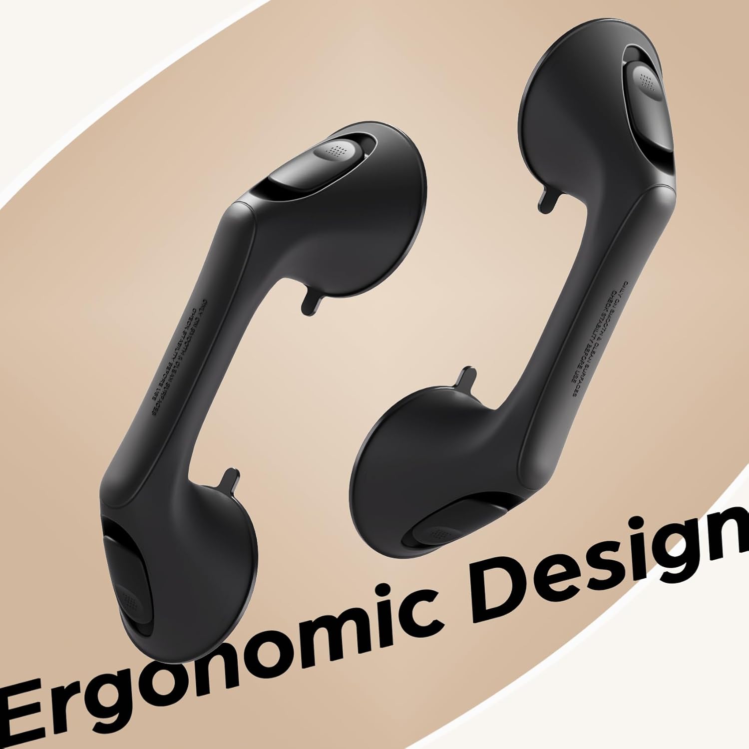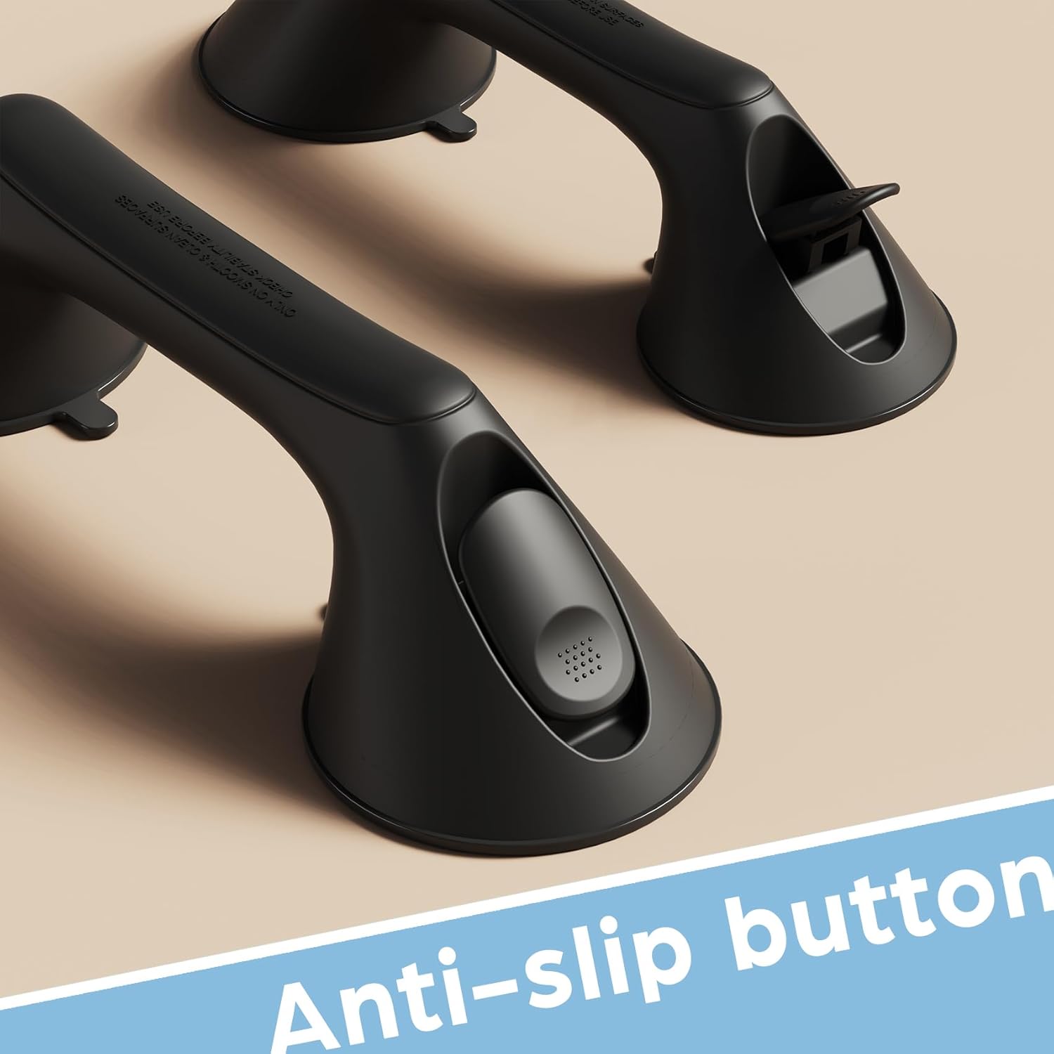 2 Pack 12 Inch Grab Bars for Bathtubs and Showers for Seniors, Heavy Duty Shower Handle for Elderly, Suction Cup Removable Handrails Handicap Bath Grip Bathroom Safety Grips (Black)