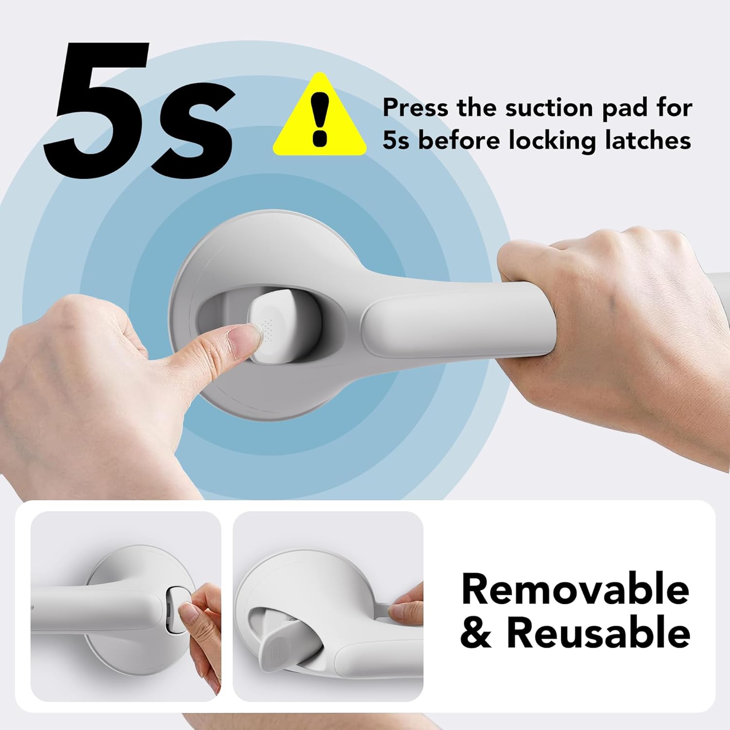 - Strong Load Capacity and Stable:After rigorous testing, a single handrail can stably bear a load of up to 250 pounds! Selected high-strength ABS material and anti-slip silicone suction cup, vacuum locking technology provides strong adsorption force, effectively preventing slipping and falling off, providing reliable support for the elderly, pregnant women, postoperative recovery and those with mobility difficulties, making bathing and using the toilet more reassuring.