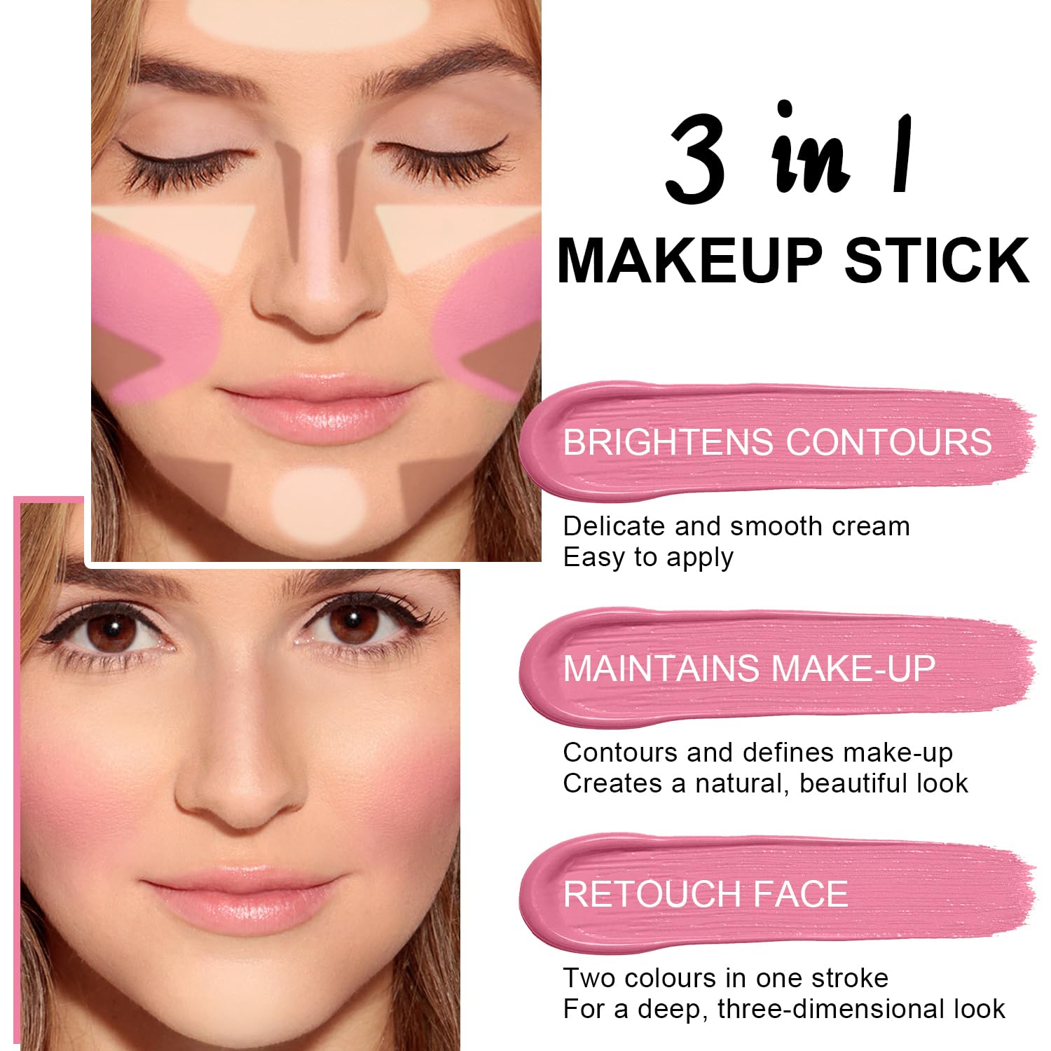 - 【Multi-Functional Shades for Every Skin Tone】Includes universal contour, highlight, and blush shades to brighten, slim, and add dimension. Use the cool-toned sticks for natural shadows, warm bronzers for sun-kissed warmth, and rosy blushes for a healthy glow. Works on fair to deep complexions!