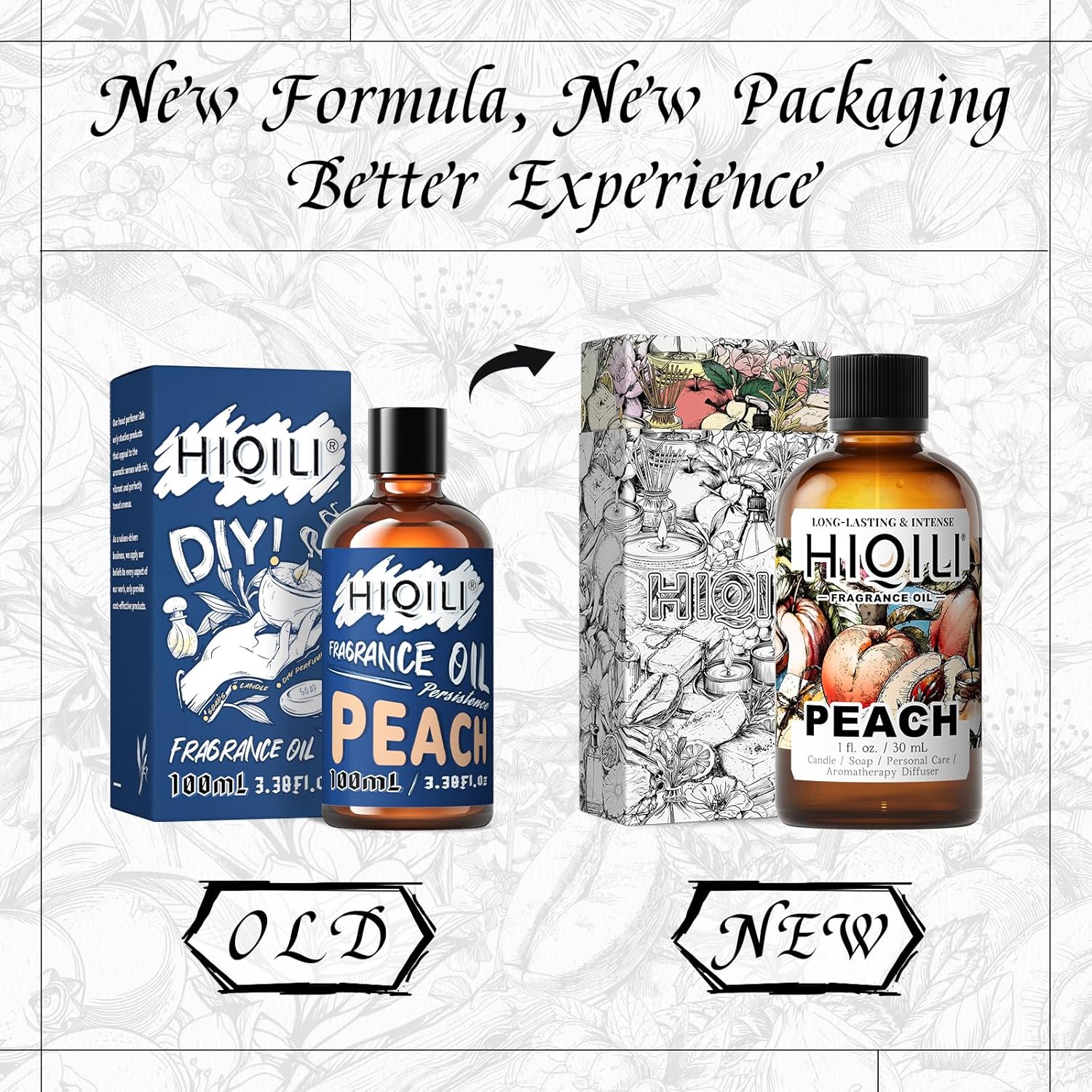 HIQILI Peach Fragrance Oil for Home Diffuser, DIY Candle, Linen & Room Freshener Spray Making, Juicy Fruit Scents - 1 Fl Oz