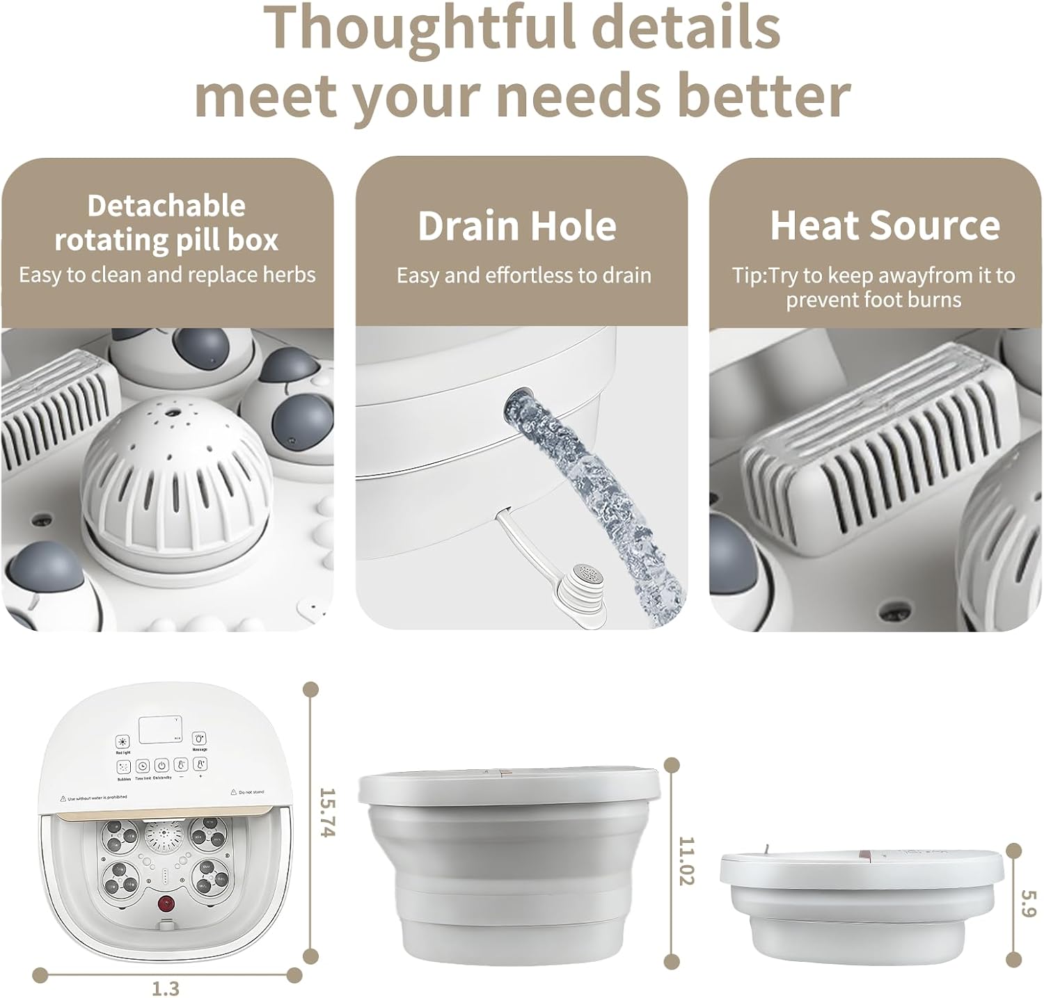 Collapasible Foot Spa Bath Massager with Heat, Pedicure Foot Spa with Bubbles/Timer/Temperature Control, Feet Soak Tub for Home, Office, Relaxation and Stress Relief, Gift for Men and Women (White)