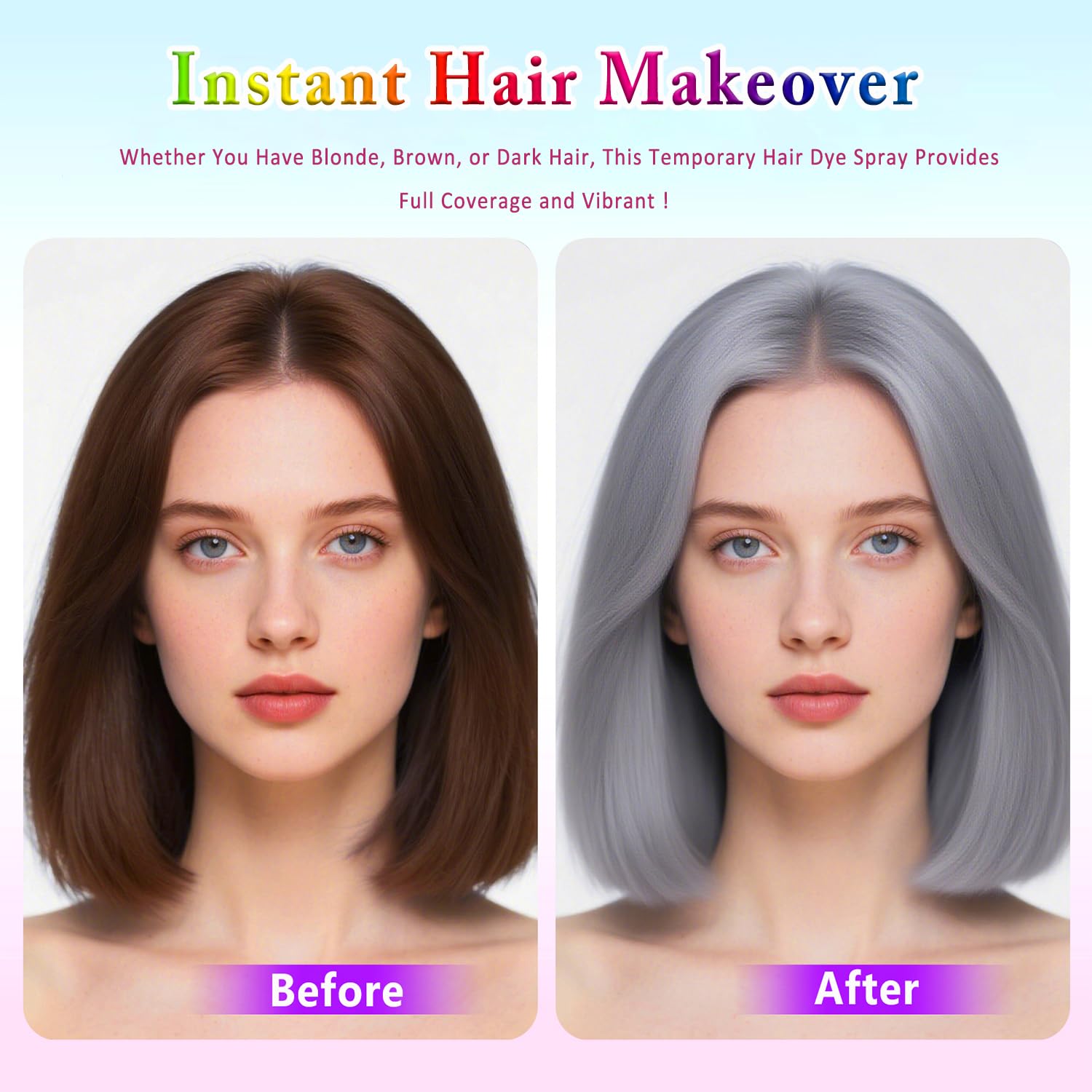 - Instant Bold Color Transformation: Achieve rich, vibrant shades in seconds with our hair color spray, ideal for temporary hair dye that lasts all day without fading, perfect for spontaneous style changes.