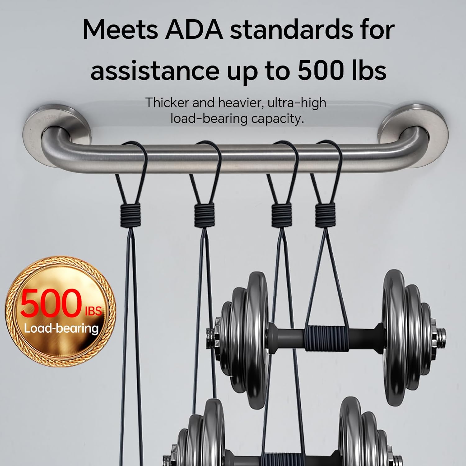 - PREMIUM CONSTRUCTION Crafted from heavy-duty 304 stainless steel, our bathroom safety grab bars are completely waterproof, rust-resistant, and built to last. With a remarkable 500-pound weight capacity, they provide essential stability for seniors, post-surgery patients, and anyone needing extra support - transforming your bathroom into a safer space.
