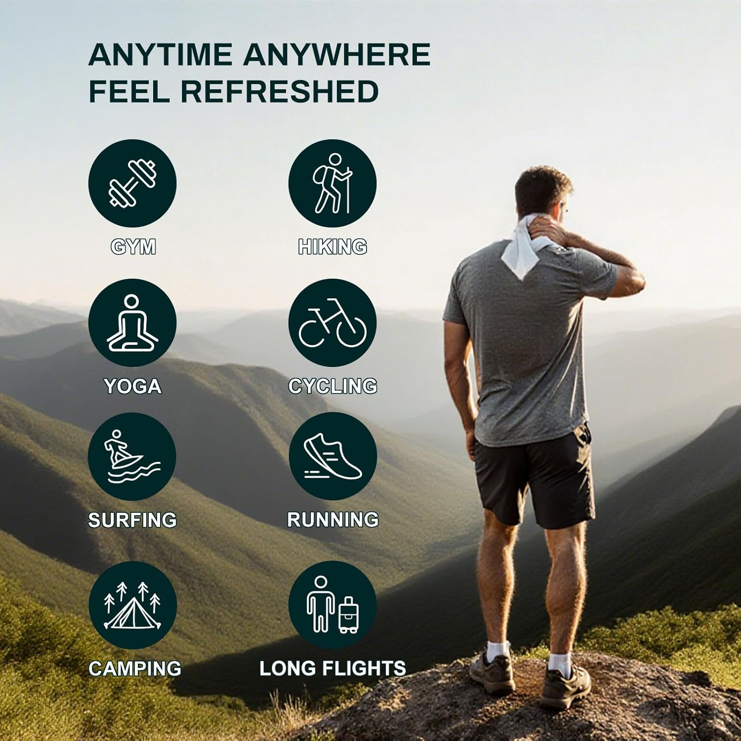 - Instant Refreshment Anywhere: Quickly removes sweat, dirt and odors during activities. Ideal for travel, camping, beach trips or outdoor sports. Waterless solution for sudden schedule changes.