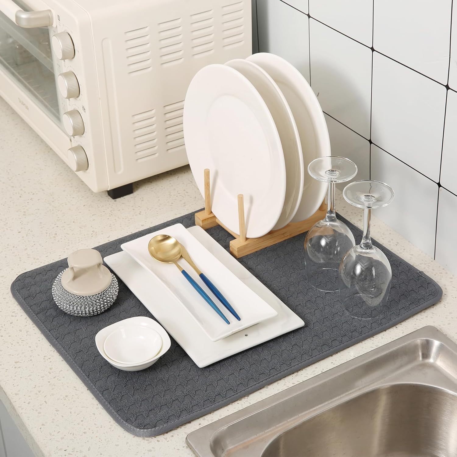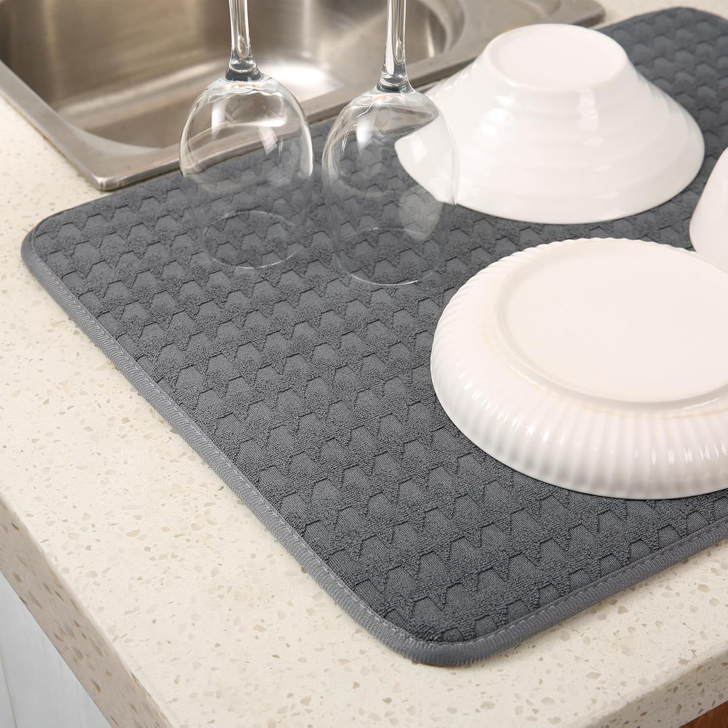 2 Pack Microfiber Dish Drying Mat for Kitchen Counter,Ultra Absorbent Dish Drainer Mat ,Dish Drying Pad , Dish Rack Mat 20×15 Inch (Dark Gray)