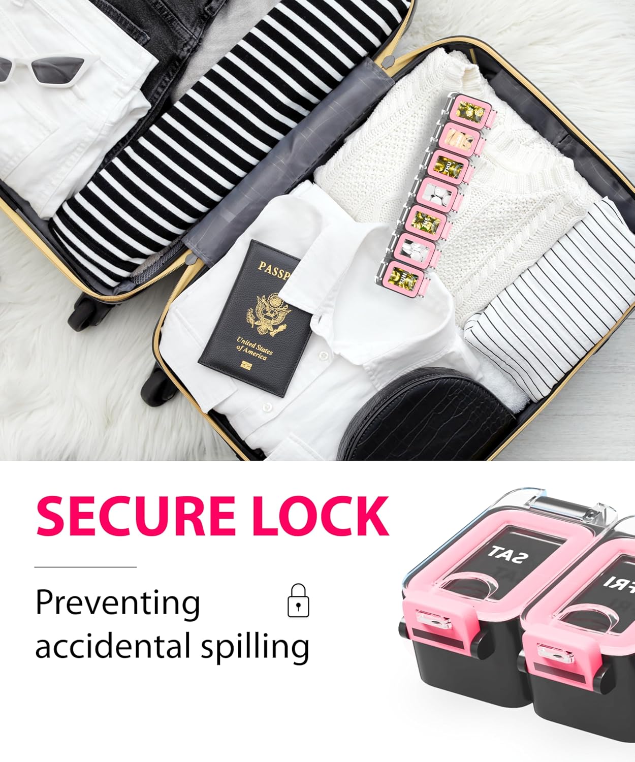 - Upgraded locking system – the pill box 7 day features reinforced individual latches that stay tightly closed to prevent spills. Designed for long-term durability without snapping or wearing out