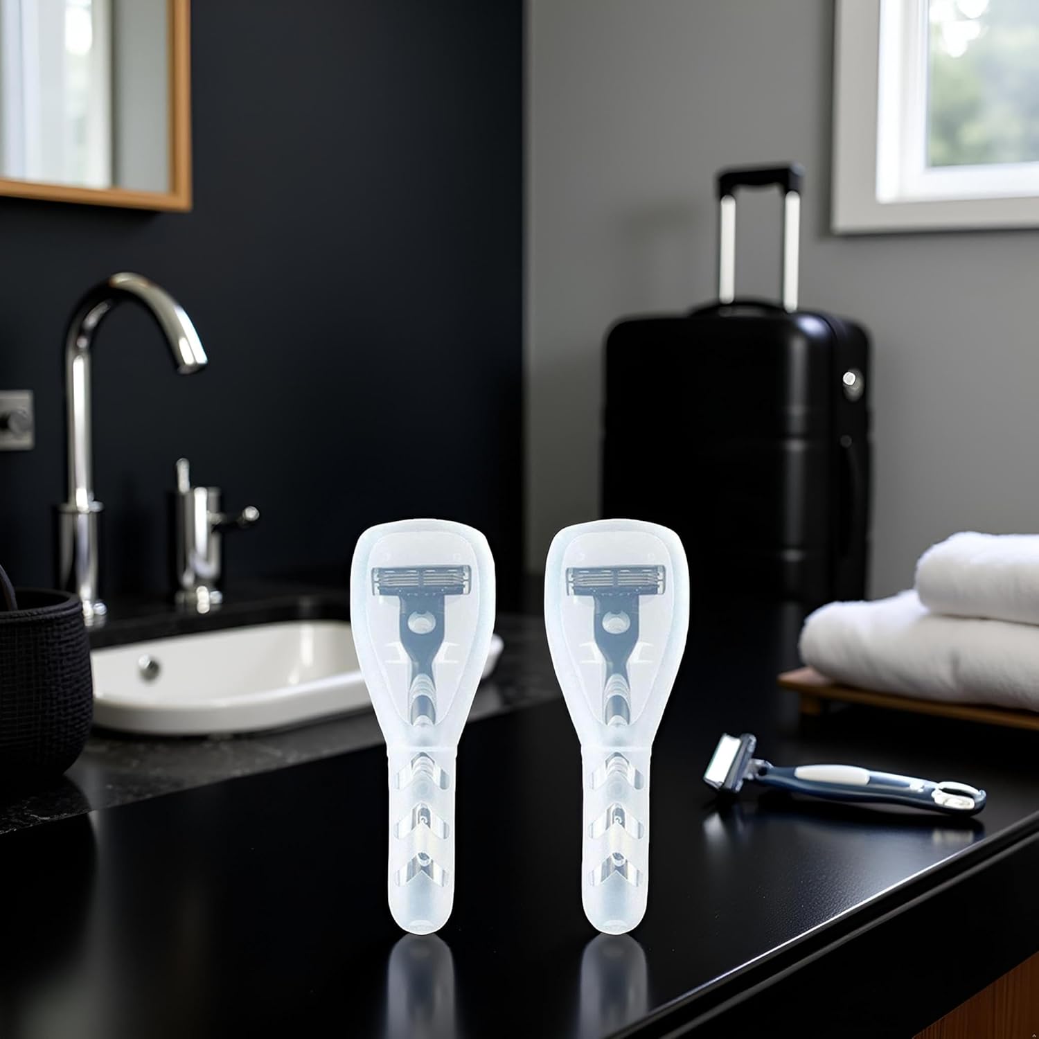 - VERSATILE STORAGE: Set of 2 transparent razor cases designed to protect and organize manual razors during travel and storage