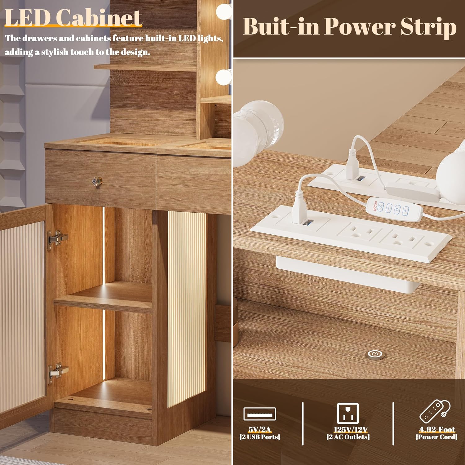 - : Style Oak Vanity with Power Outlet